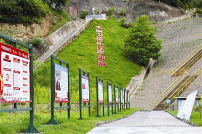 積極培育具有礦山特色的生態(tài)文化,凝心聚力,成風化人。2019年8月在尾礦壩開展了建設生態(tài)文化主題宣傳,現(xiàn)場定置擺放宣傳展板30余個。公司黨委書記、董事長秦寧昌親自參與這次策劃,推動生態(tài)文化引起共鳴,將尾礦壩一側(cè)供過往職工歇腳的亭子命名為“永安亭”,并創(chuàng)作了兩幅寓意鮮明的對聯(lián)懸掛在亭門上,其中一幅寫道:“留得青山福萬代,守住綠水佑子孫?!?