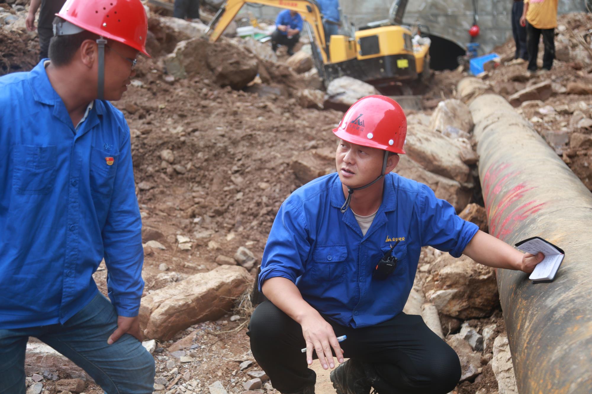 在栗西尾礦庫(kù)上壩道路打通后,他來(lái)不及休息,又接到王家坪尾礦輸送管線疏通的重任。他再次一馬當(dāng)先,帶領(lǐng)搶險(xiǎn)人員爬山涉水、翻山越嶺,徒步實(shí)地勘察管線受損情況,參與研究制定搶修作業(yè)方案。他們背著礦泉水、方便面,手腳并用爬過(guò)激流當(dāng)?shù)赖臏o家溝路段,腳踩深達(dá)80多厘米的洞內(nèi)淤泥積水,從被亂石掩埋,高度只有30多厘米高的洞口夾縫中艱難爬出。他每天在泥濘中行走20余公里,從不退縮,一往無(wú)前。
