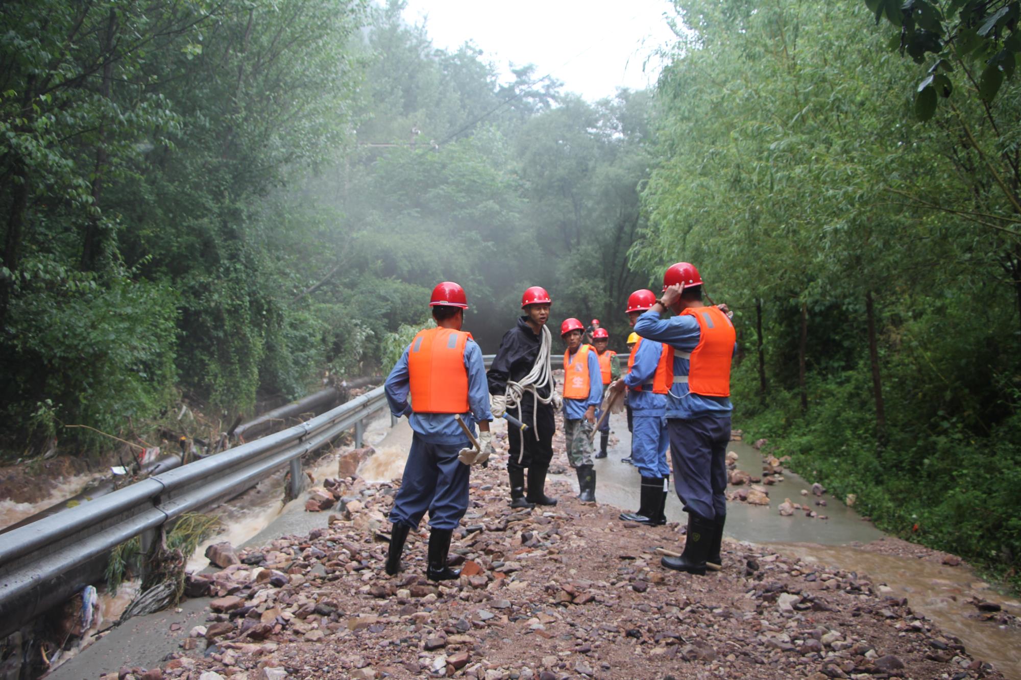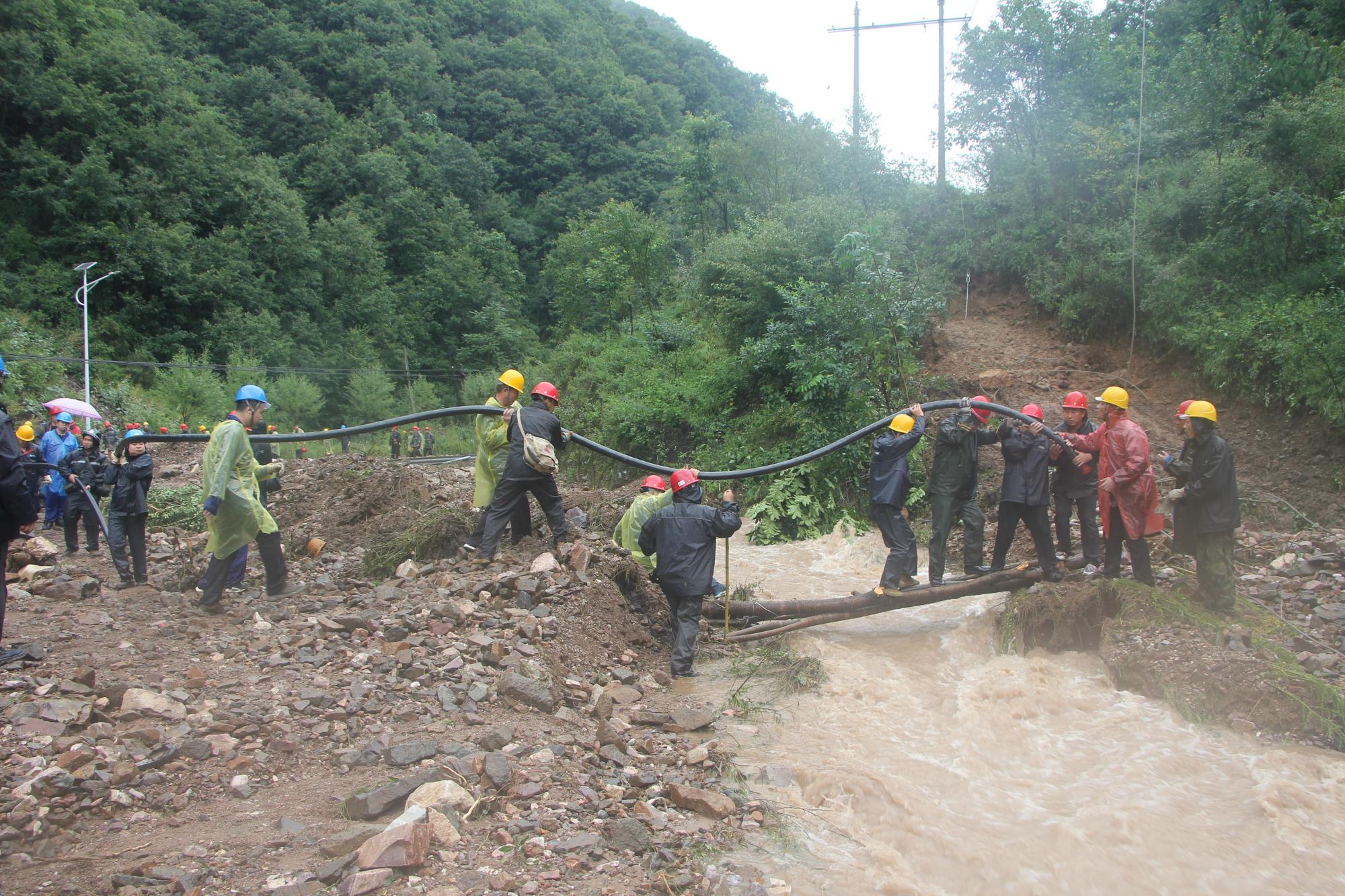8月6日凌晨4時(shí)許,他帶領(lǐng)人員巡查石可照明和水源線路,查明水源線路前半段因泥石流等原因造成多處樹木傾倒壓線,石可高壓線路多個(gè)電桿傾斜。天亮后,他帶領(lǐng)巡線小組再次巡查線路。由于路面水毀嚴(yán)重,徒步巡查水源后半段線路時(shí),路面塌方且水流又急又大,有幾處路段需爬山繞行,當(dāng)查明水源線33、34號(hào)電桿傾倒,他立即制定搶修方案,組織人員做好搶修準(zhǔn)備。7日凌晨,分公司開始集合搶修人員進(jìn)行線路搶修,他指揮搶修器材裝車,進(jìn)行電纜鋪設(shè)、對(duì)接等,在大雨中苦干近20個(gè)小時(shí)。在即將完成搶修任務(wù)的時(shí)候,由于再次強(qiáng)降雨,造成32號(hào)桿意外折斷,他又趕緊制定二次搶修方案,連夜勘查31號(hào)和30號(hào)桿狀況。8日上午6時(shí),他再次組織人員搶修水源線路,完成了31號(hào)桿之前的線路檢查測(cè)試,排除接地隱患,并對(duì)水庫配電室進(jìn)行排查,提前做好送電準(zhǔn)備工作。經(jīng)過3天水源線路搶修,共鋪設(shè)1000余米、重約10噸的電纜,制作終端頭3個(gè),對(duì)接頭2個(gè),8日晚19時(shí)47分,圓滿完成水源線路搶修任務(wù)。