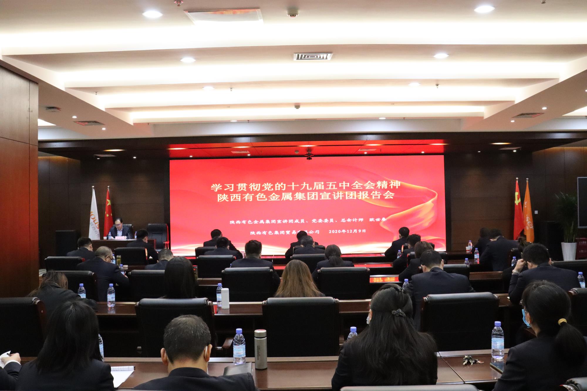 12月9日,學習宣傳貫徹黨的十九屆五中全會精神陜西有色金屬集團宣講團報告會在貿(mào)易公司舉行。陜西有色金屬集團宣講團成員、黨委委員、總會計師歐世秦作宣講報告,貿(mào)易公司黨委書記、執(zhí)行董事葛琦主持。