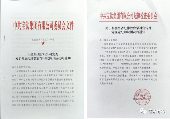 8月16日,寶鈦集團(tuán)紀(jì)委專門(mén)印發(fā)《關(guān)于參加全省紀(jì)律教育學(xué)習(xí)宣傳月黨規(guī)黨紀(jì)知識(shí)測(cè)試的通知》,要求各單位黨組織廣泛動(dòng)員、認(rèn)真組織,掀起學(xué)習(xí)黨規(guī)黨紀(jì)的熱潮,確保教育對(duì)象全員參與,知識(shí)測(cè)試全面覆蓋。