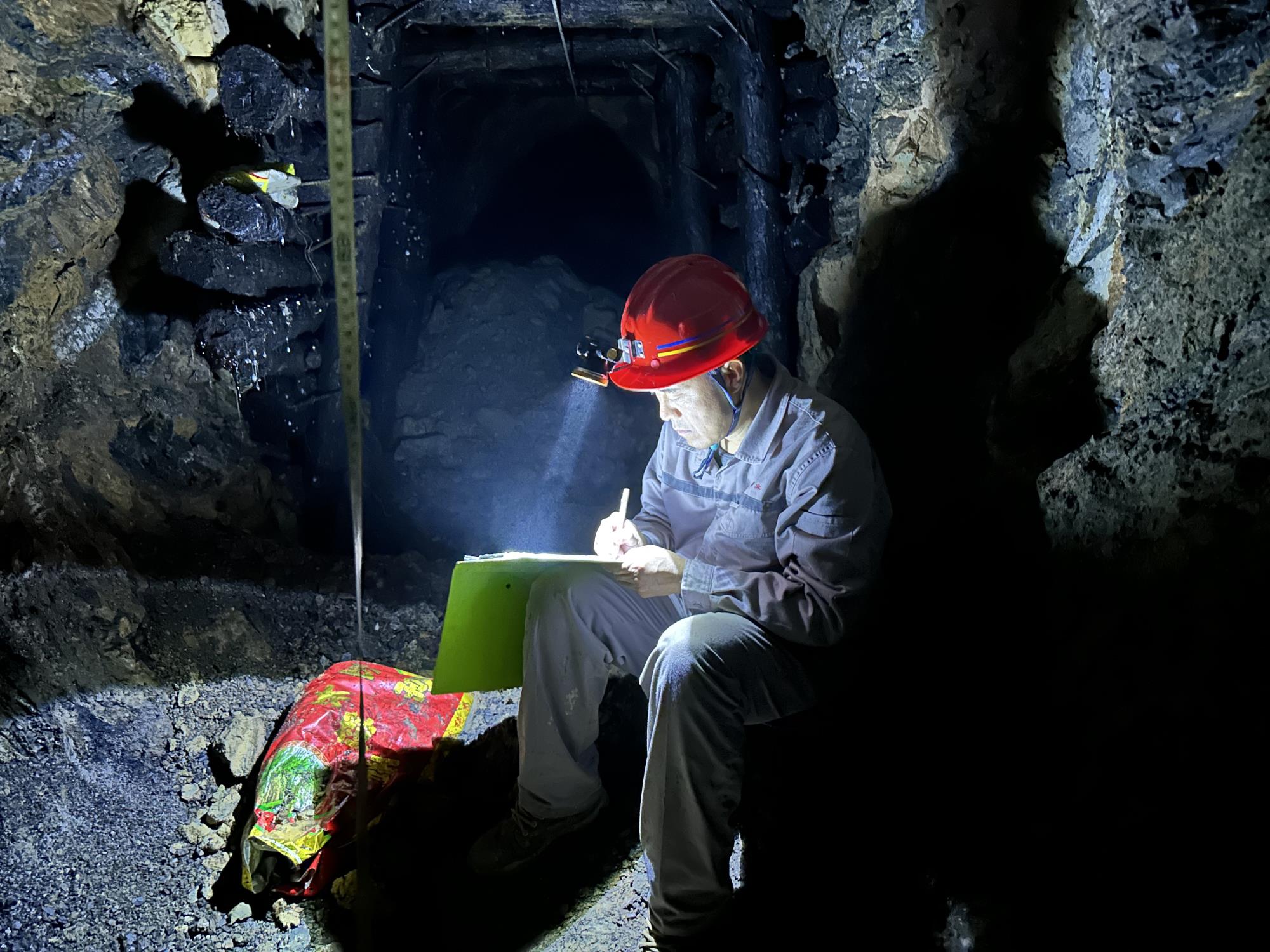 當(dāng)寨子溝礦區(qū)樣品送檢后,坑道成了我的另一個(gè)課堂。師父教我測(cè)量各類產(chǎn)狀,教我展點(diǎn)和產(chǎn)狀,教我如何勾畫地質(zhì)界線……水珠從坑道頂板滴落,在礦燈光束里拉出銀線。師父的筆尖在巖壁上游走如活物,筆尖順層理滑動(dòng),在圖紙上旋出流暢的曲線?;璋倒饩€下,那墨線竟有了生命般微微搏動(dòng)——巖石的密碼被解開一道縫隙,礦脈的暖流正滲出石壁。地質(zhì)錘叩擊巖壁的顫音未散,巖石紋層間簌簌剝落的碎屑里,恍有古河道裹挾風(fēng)沙的呼嘯掠過(guò)指腹。