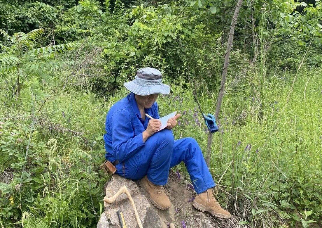 一旦天光微亮,雨勢暫歇,我與師兄楊澤男便立即帶上地質(zhì)錘、羅盤和記錄本,直奔寨子溝。那里山勢陡峻,無路可循,我們便憑四肢攀援,靠工具借力,每一步都踏實得近乎笨拙。茂密的灌木叢時時牽扯衣褲,裸露的巖石在雨水沖刷后格外濕滑。行進雖緩,心境卻并不滯重。途中與師兄時而閑聊,時而就某個地質(zhì)現(xiàn)象展開討論。喘息之間,我常想起老一輩地質(zhì)人——他們沒有如今精密儀器,沒有輕便裝備,僅憑雙腿雙手、一支鉛筆,是如何踏遍這荒蕪崎嶇,又如何將整座山的地層與構(gòu)造,理得清清楚楚?