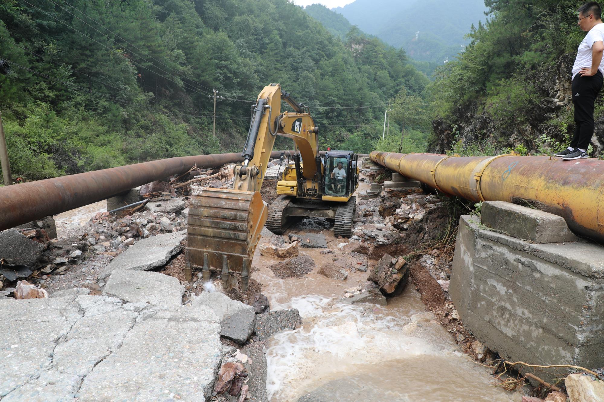 截至8月8日,麻家砭水庫道路具備通車條件,水庫方向電路鋪設電纜搶修工作完成,建立了臨時生產供水管路;栗西尾礦庫上壩道路全線貫通,通訊搶修工作完成;配合地方政府修復了華金公路沖毀路段。僅用3天時間,金堆礦區供電、供水、通訊全部恢復正常,尾礦庫、水庫具備恢復生產搶修條件。