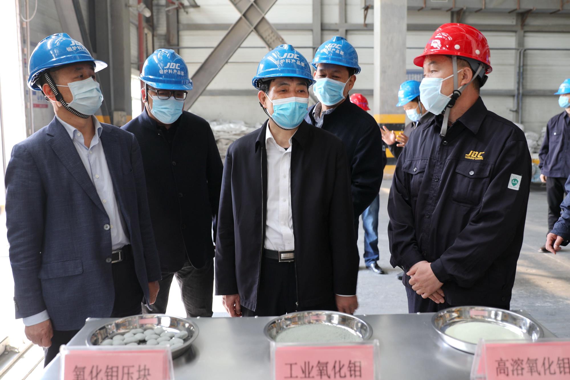 陜西有色金屬集團黨委副書記、總經理鄒武裝(左三)到金鉬集團指導復工復產工作。