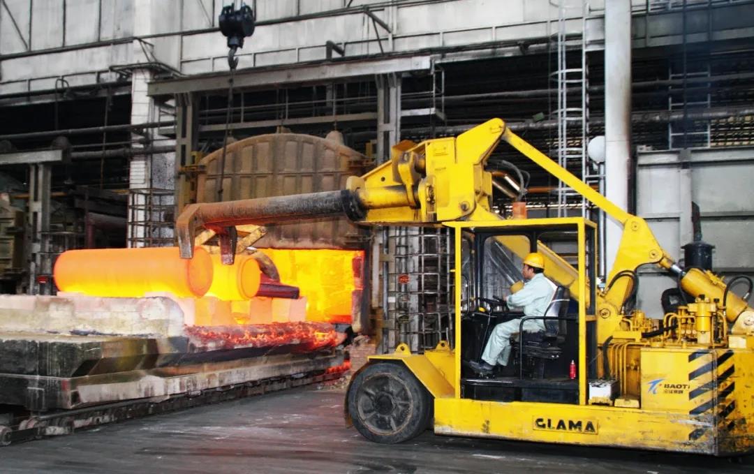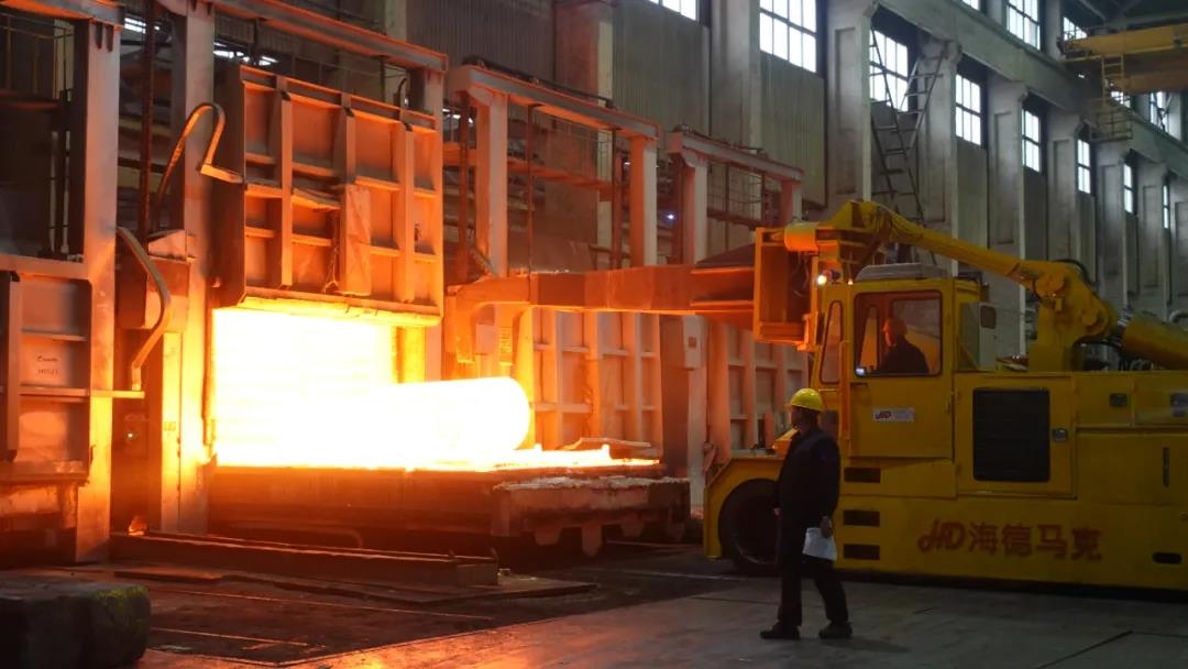 1月20日,記者在寶鈦集團鍛造廠看到,火紅的鈦錠依次出爐,工人們有序忙碌著,現場一片火熱景象。