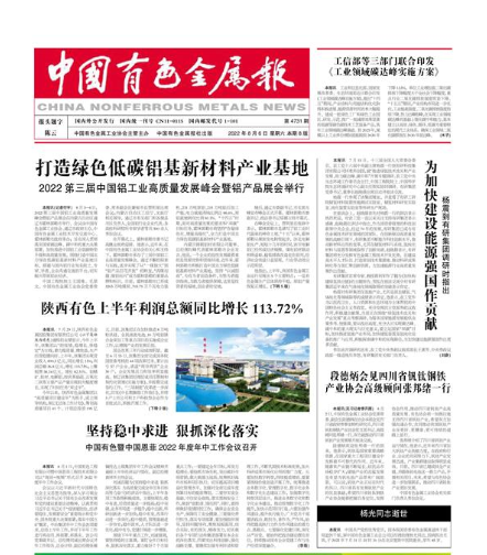 7月29日,陜西有色金屬控股集團有限責任公司(以下簡稱陜西有色)通報的業績顯示,今年上半年,該集團以“防疫情、穩增長、保穩定”為主線,著力提質量、增效益,生產經營穩健向好。上半年,該集團實現營業收入890.3億元,同比增長15%;利潤總額26.8億元,增長113.72%;上繳稅費38.34億元,增長82.31%。鉬精礦、鈦材、電解鋁、粒狀多晶硅、五氧化二釩等主要產品產量實現較大幅度增長,實現了時間任務“雙過半”。