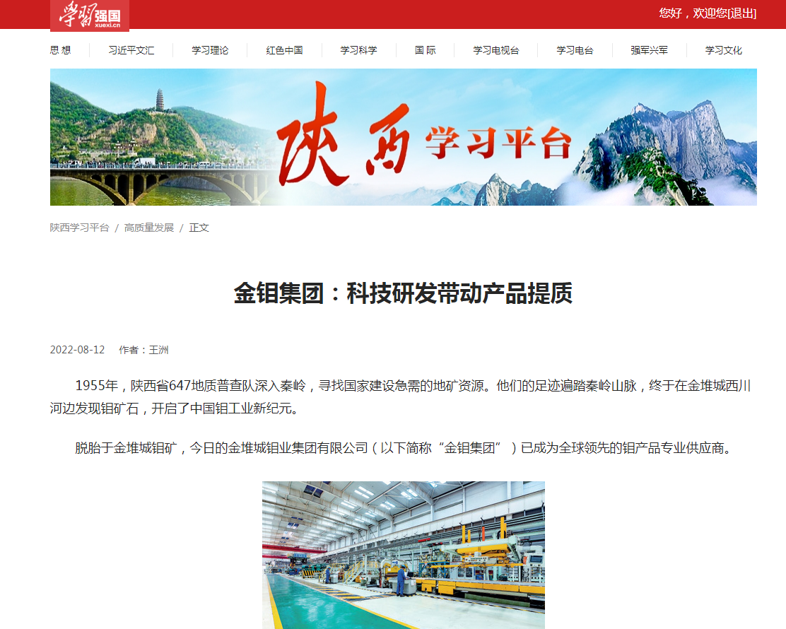 脫胎于金堆城鉬礦,今日的金堆城鉬業集團有限公司(以下簡稱“金鉬集團”)已成為全球領先的鉬產品專業供應商。