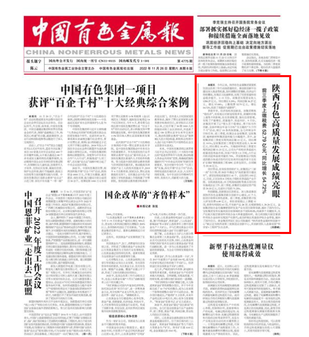 今年以來,陜西有色金屬集團緊緊抓住國企改革三年行動高質量收官、秦創原創新平臺建設深入推進等機遇,及時調整經營策略,經濟運行持續攀高,發展活力加速釋放,實現了經營質量和效益穩步提升。1—9月份,該集團實現營業收入1258.27億元,同比增長5.39%;利潤總額36.27億元,增長57.08%;上繳稅費52.79億元,增長54.72%,收獲了亮眼的“成績單”。