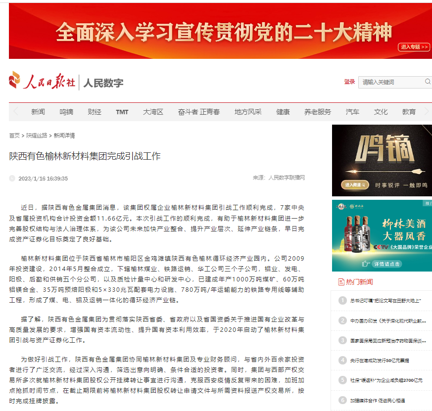 據了解,陜西有色金屬集團為貫徹落實陜西省委、省政府以及省國資委關于推進國有企業改革與高質量發展的要求,增強國有資本流動性、提升國有資本利用效率,于2020年啟動了榆林新材料集團引進戰略投資者與資產證券化工作。