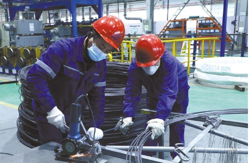 2月10日,在金鉬集團金屬分公司鉬制品分廠,一線工人正在用切割機對鉬桿進行切割作業。1月份,鉬制品分廠生產鉬桿30噸,圓滿完成生產任務。本報記者 沈謙攝