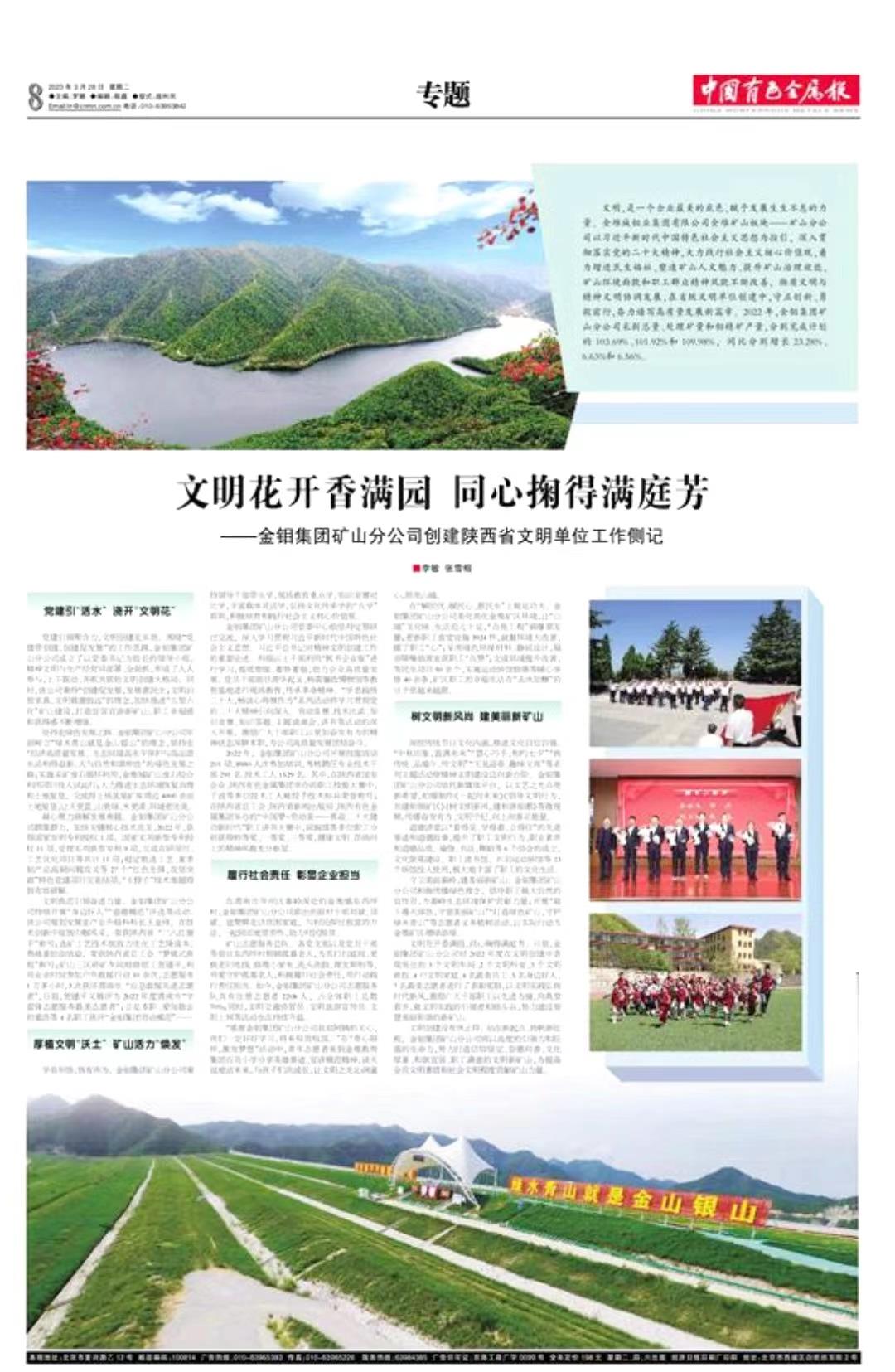 文明,是一個企業最美的底色,賦予發展生生不息的力量。金堆城鉬業集團有限公司金堆礦山板塊——礦山分公司以習近平新時代中國特色社會主義思想為指引,深入貫徹落實黨的二十大精神,大力踐行社會主義核心價值觀,著力增進民生福祉、塑造礦山人文魅力、提升礦山治理效能,礦山環境面貌和職工群眾精神風貌不斷改善,物質文明與精神文明協調發展,在省級文明單位創建中,守正創新、勇毅前行,奮力譜寫高質量發展新篇章。2022年,金鉬集團礦山分公司采剝總量、處理礦量和鉬精礦產量,分別完成計劃的103.69%、101.92%和109.98%,同比分別增長23.28%、6.63%和6.56%。