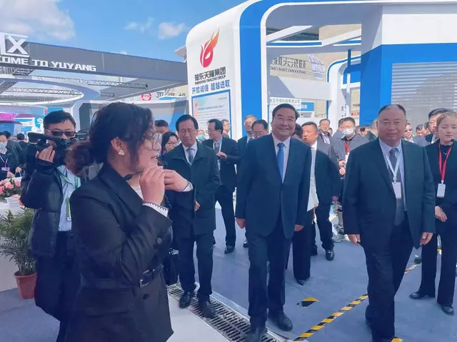 開幕式后,陜西省政協副主席、榆林市委書記張曉光,省貿促會會長馬玉紅等領導蒞臨陜西有色榆林新材料集團展臺參展,孫書平就公司規模、園區建設、產業鏈發展等情況進行了詳細的介紹。張曉光、馬玉紅對“煤、電、鋁”一體化發展的“榆林新材料模式”表示了肯定。
