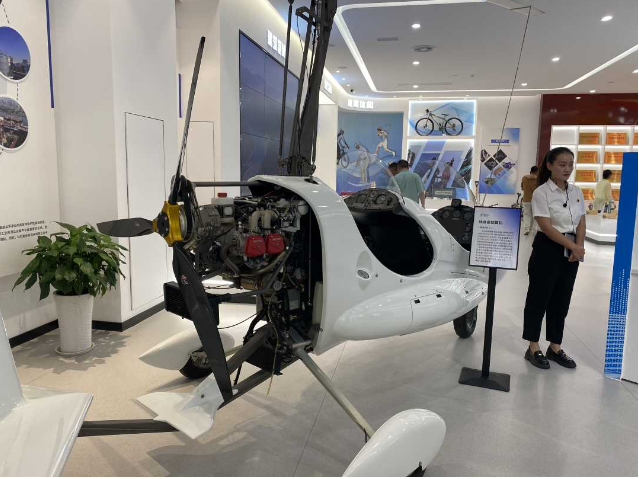 陜西寶雞寶鈦集團有限公司展覽館里顯示的鈦合金旋翼機,鈦合金用量約占飛機金屬材料用量的60%至70%。經濟日報記者 劉蓉攝