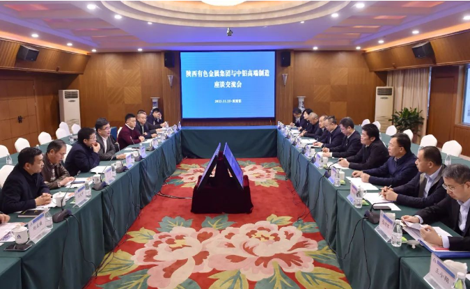 11月25日,陜西有色金屬集團黨委書記、董事長吳群英率隊赴重慶走訪了中國鋁業集團高端制造股份有限公司(以下簡稱中鋁高端制造),與中鋁高端制造黨委副書記、總經理李謝華圍繞產業協同、科技創新、高端制造等領域合作進行座談交流。陜西有色金屬集團黨委副書記、董事王小慶,黨委委員、副總經理黃忠良,黨委委員、副總經理王天雄一同走訪。中鋁高端制造副總經理、西南鋁黨委書記、董事長黎勇參加會見。