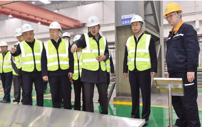 座談會前,吳群英一行參觀了西南鋁展廳、厚板生產線、熱連軋生產線、鍛造生產線、新2800mm生產線、中鋁特材和全鋁家居展廳。