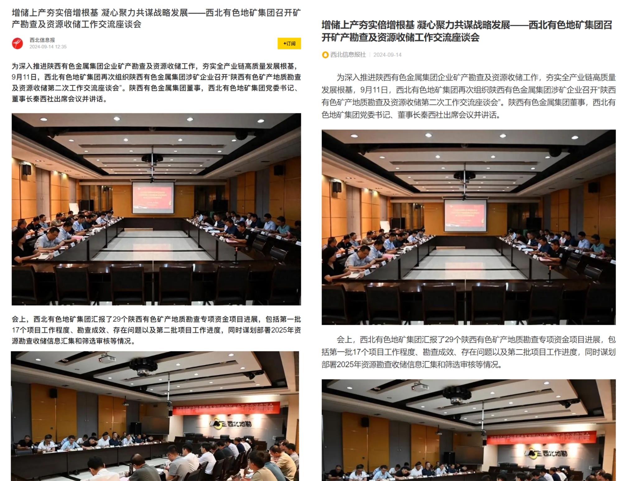 近日,地礦集團組織陜西有色金屬集團涉礦企業召開“礦產地質勘查及資源收儲第二次工作交流座談會”,全面總結陜西有色29個礦產地質勘查專項資金項目進展,謀劃2025年資源勘查收儲信息匯集和篩選審核等工作。陜西有色金屬集團以“國之大者”的使命擔當,堅定不移加大礦產地質勘查及資源收儲力度的經驗做法和有關項目進展引發社會媒體關注。