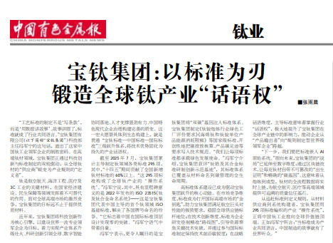 從追趕標(biāo)準(zhǔn)到定義規(guī)則,從材料供應(yīng)商到系統(tǒng)構(gòu)建者,寶鈦集團(tuán)用295項(xiàng)標(biāo)準(zhǔn)編織的產(chǎn)業(yè)“操作系統(tǒng)”,正將中國(guó)鈦工業(yè)推向全球價(jià)值鏈頂端。正如馮軍寧所言:“當(dāng)標(biāo)準(zhǔn)成為產(chǎn)業(yè)共同語言,中國(guó)制造的故事就有了世界聽眾。”