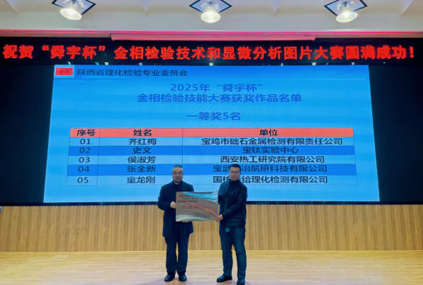 近日,由陜西省機(jī)械工程學(xué)會、中西部地區(qū)理化檢驗(yàn)聯(lián)合會、陜西省機(jī)械工程學(xué)會理化檢驗(yàn)專業(yè)委員會聯(lián)合主辦的“舜宇杯”金相檢驗(yàn)技術(shù)與顯微分析圖片大賽在西安舉行。寶鈦集團(tuán)實(shí)驗(yàn)中心(以下簡稱“實(shí)驗(yàn)中心”)一舉斬獲12項(xiàng)榮譽(yù),其中史文、劉文峰、蔡美超憑借精湛的金相檢驗(yàn)技術(shù)與高水準(zhǔn)的參賽作品分別摘得一、二、三等獎,實(shí)驗(yàn)中心以高效的組織協(xié)調(diào)、嚴(yán)格的作品審查榮獲“最佳組織獎”。