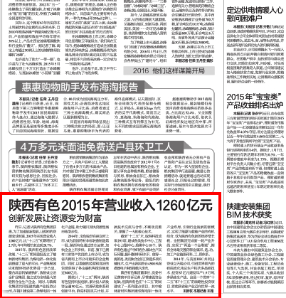 三秦都市報(bào):陜西有色2015年?duì)I業(yè)收入1260億元