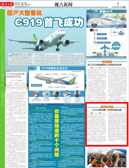 5月5日,國產(chǎn)商用大飛機C919成功首飛,寶鈦集團有限公司作為國產(chǎn)大飛機國內(nèi)唯一鈦材料供應商,備受矚目。