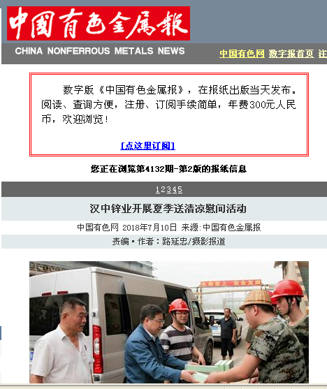 中國有色金屬報:漢中鋅業開展夏季送清涼慰問活動