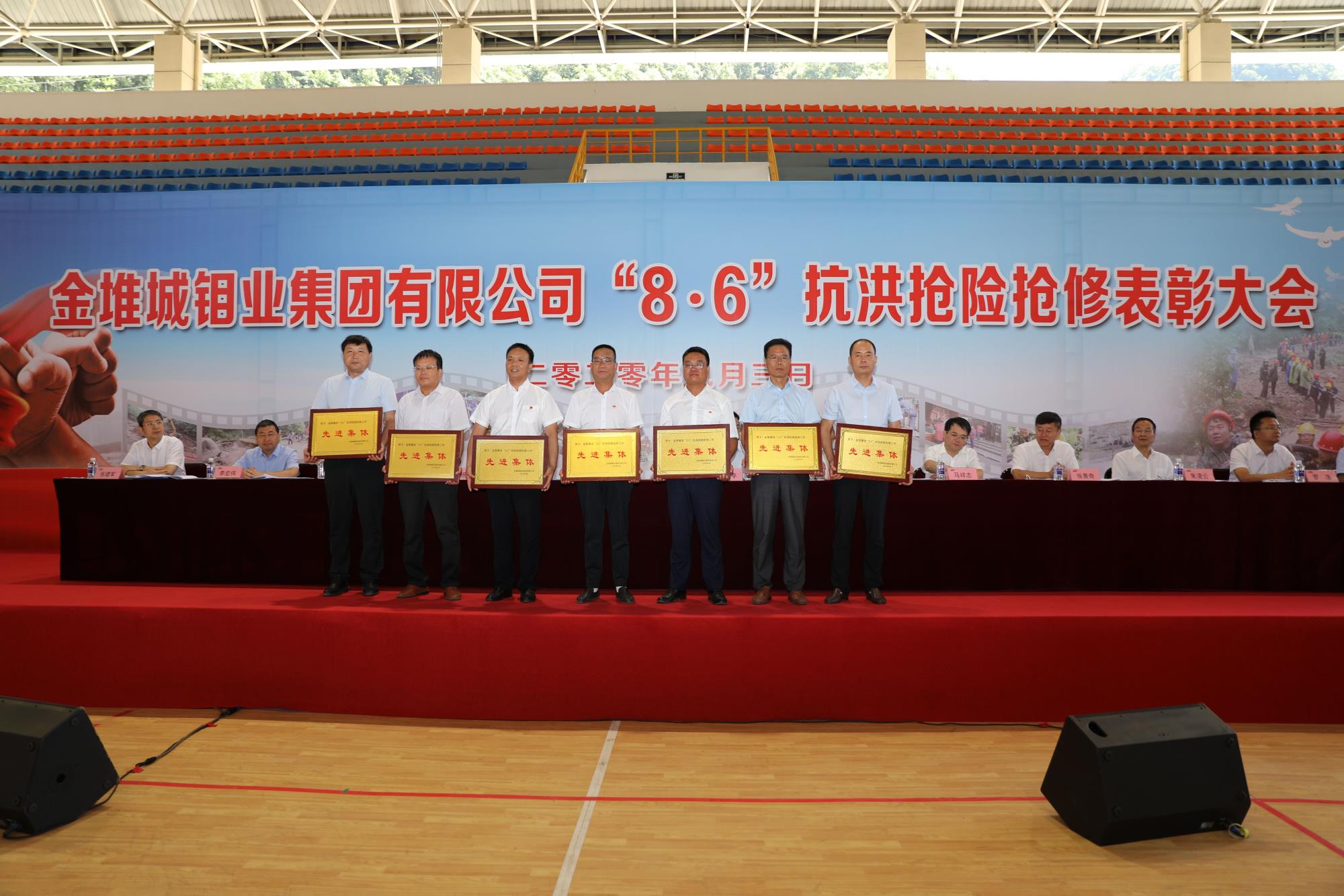 9月3日,金鉬集團(tuán)在金堆礦區(qū)石可體育活動中心召開“8.6”抗洪搶險(xiǎn)搶修表彰大會。陜西有色金屬集團(tuán)黨委書記、董事長馬寶平出席表彰大會并講話。