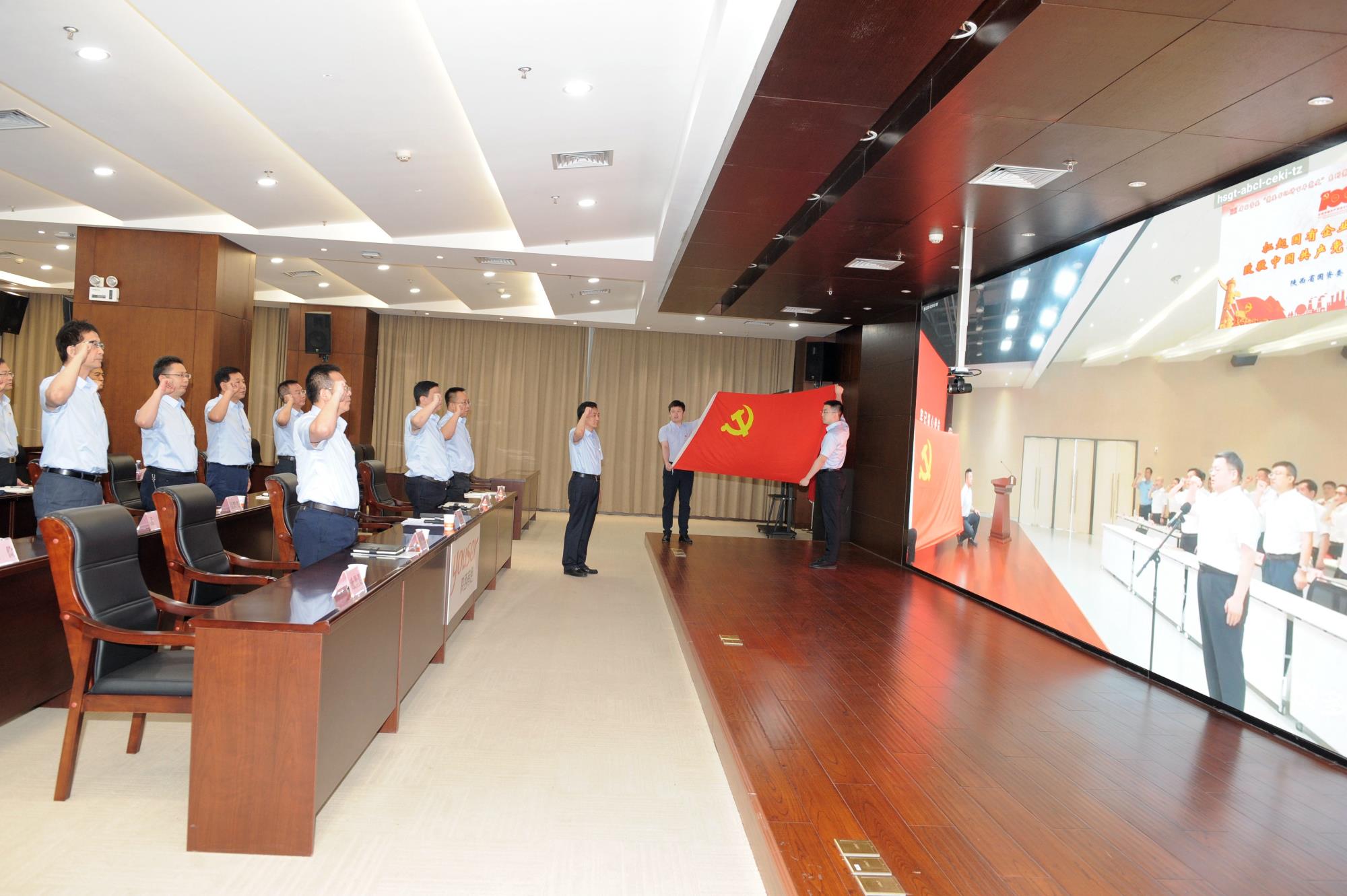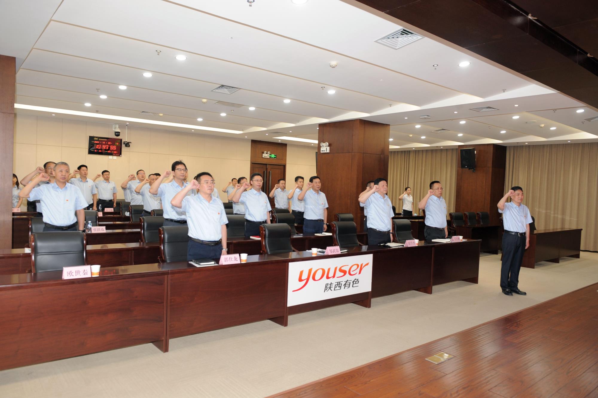 宣講報(bào)告結(jié)束后,面對(duì)鮮紅的黨旗,劉斌在主會(huì)場(chǎng)帶領(lǐng)全體參會(huì)黨員集體宣誓,重溫了入黨誓詞。與會(huì)同志在嘹亮的錚錚誓言中,進(jìn)一步堅(jiān)定理想信念,牢記初心使命。陜西有色金屬集團(tuán)黨委副書(shū)記、總經(jīng)理鄒武裝在集團(tuán)公司分會(huì)場(chǎng)領(lǐng)誓,集團(tuán)公司領(lǐng)導(dǎo)班子成員及總部中層以上干部進(jìn)行宣誓。