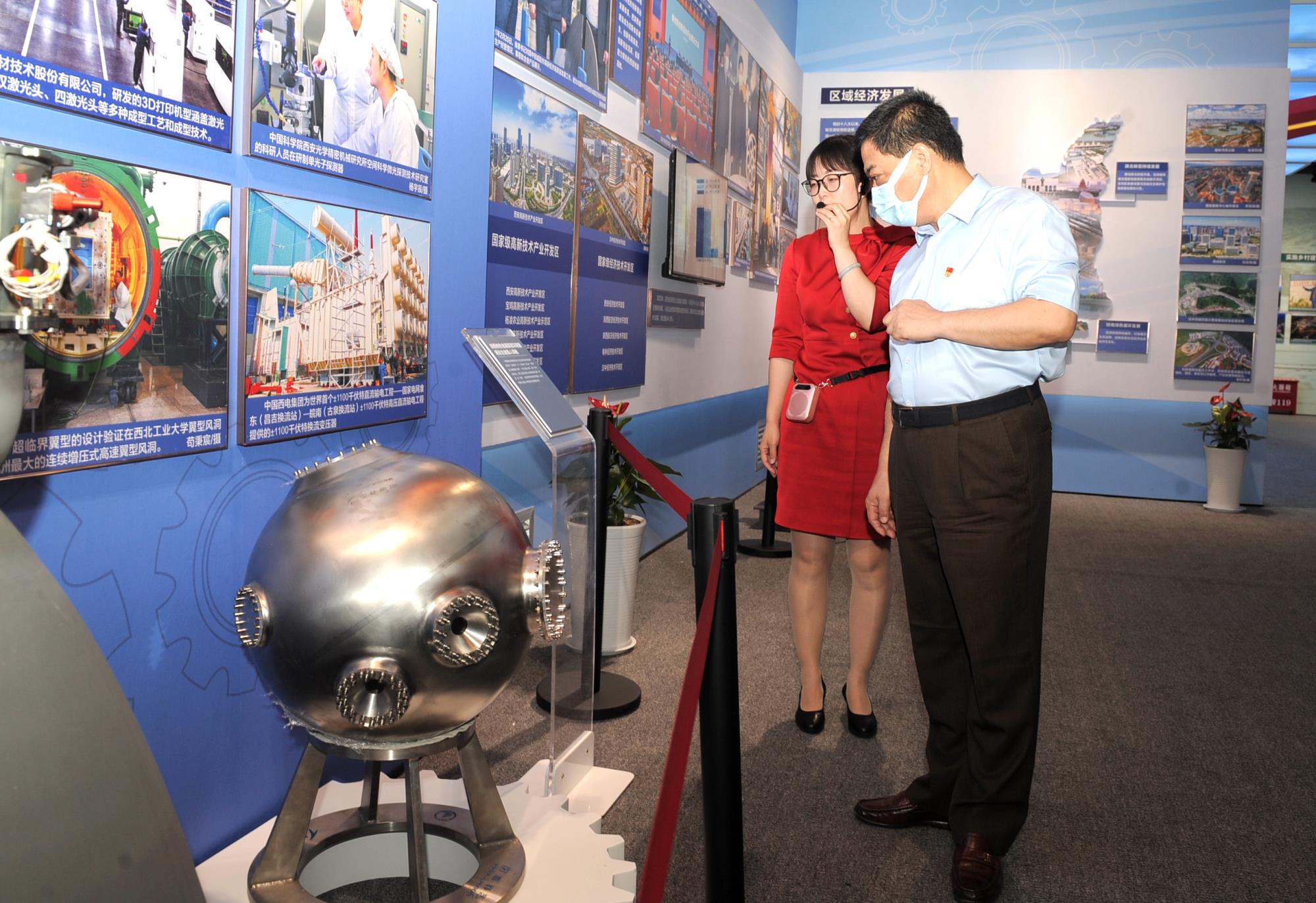 在“歷史轉(zhuǎn)折”和“奮進(jìn)新時(shí)代”展區(qū),陜西有色金屬集團(tuán)作為陜西千億級(jí)企業(yè),為此次主題展提供的金堆城選礦廠、電子級(jí)多晶硅生產(chǎn)線、鈦鑄錠生產(chǎn)線等照片,以及寶鈦集團(tuán)研制的4500米深潛器載人球艙的精美模型,吸引了諸多參觀者駐足觀看,流連拍照。