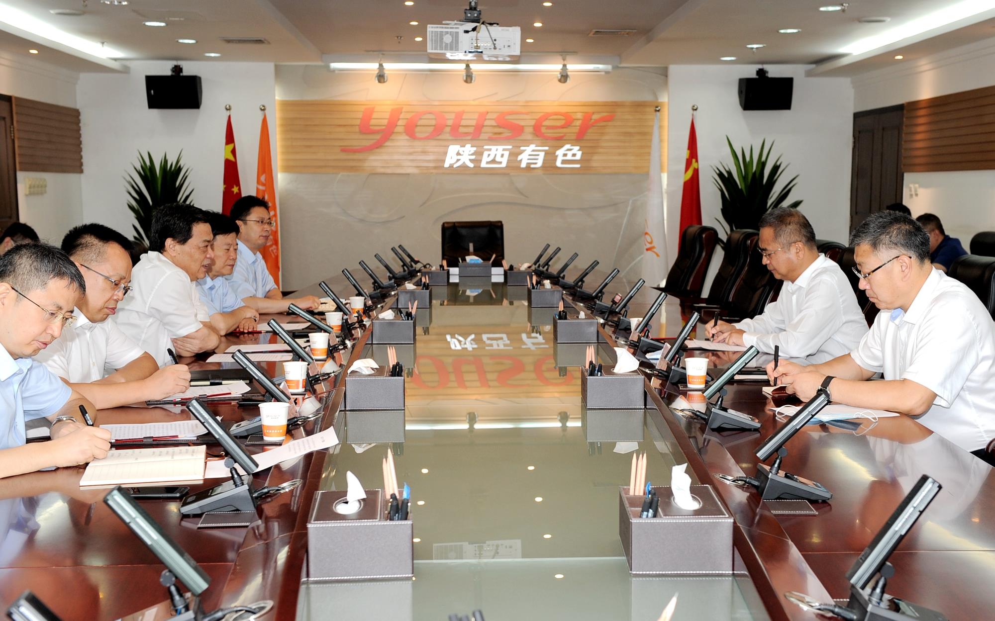 8月9日,寶雞市委副書記、市長楊廣亭到陜西有色金屬集團(tuán)走訪對接有關(guān)工作,集團(tuán)公司黨委書記、董事長馬寶平會見并座談交流。