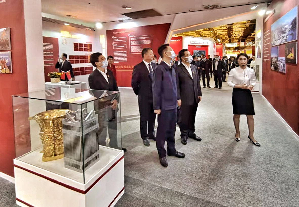 10月10日上午,“牢記囑托強根固魂,黨建領航改革創新”陜西省國資系統貫徹落實全國國企黨建工作會議精神成果展在曲江國際會議中心開幕。陜西省副省長程福波,省委組織部副部長、省公務員局局長魯鋒,省國資委黨委書記劉斌等領導蒞臨有色展臺參觀指導,集團公司黨委書記、董事長馬寶平,黨委副書記、總經理鄒武裝,黨委副書記郭仕龍參加開幕式相關活動并陪同參觀。