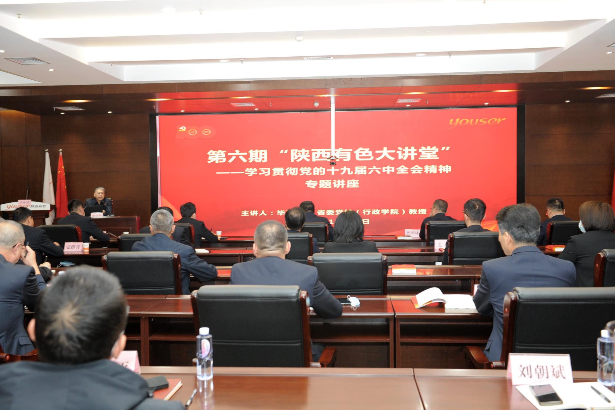 11月25日,陜西有色金屬集團(tuán)黨委舉辦第六期“陜西有色大講堂”——黨的十九屆六中全會(huì)精神宣講輔導(dǎo)專題講座,邀請(qǐng)省委黨校(行政學(xué)院)畢遠(yuǎn)佞教授作輔導(dǎo)報(bào)告。集團(tuán)公司黨委書記、董事長(zhǎng)馬寶平,黨委副書記、總經(jīng)理鄒武裝等領(lǐng)導(dǎo)班子成員、總部中層以上干部參加,黨委副書記、董事王小慶主持講座。