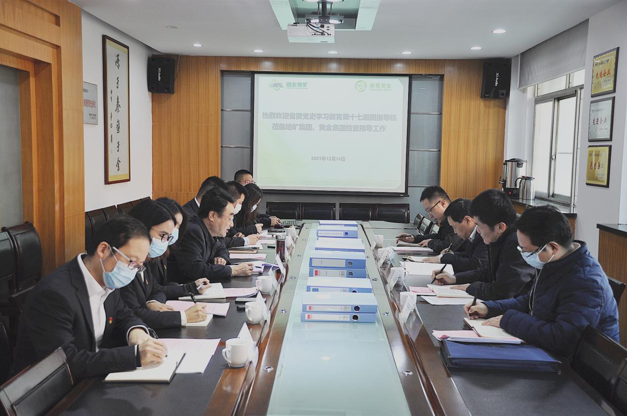 12月14日下午,省委黨史學(xué)習(xí)教育第十七巡回指導(dǎo)組組長(zhǎng)、省國(guó)有企業(yè)監(jiān)事會(huì)主席劉為民,組員、省國(guó)資委人事處副處長(zhǎng)楊柏森,到地礦集團(tuán)、黃金集團(tuán)檢查指導(dǎo)黨史學(xué)習(xí)教育工作。陜西有色金屬集團(tuán)黨史學(xué)習(xí)教育第七巡回指導(dǎo)組組長(zhǎng)、黨委副書記、董事王小慶,副組長(zhǎng)、黨委宣傳部部長(zhǎng)王新權(quán)陪同。兩集團(tuán)黨史學(xué)習(xí)教育領(lǐng)導(dǎo)小組組長(zhǎng)、黨委書記、董事長(zhǎng)秦西社主持會(huì)議。