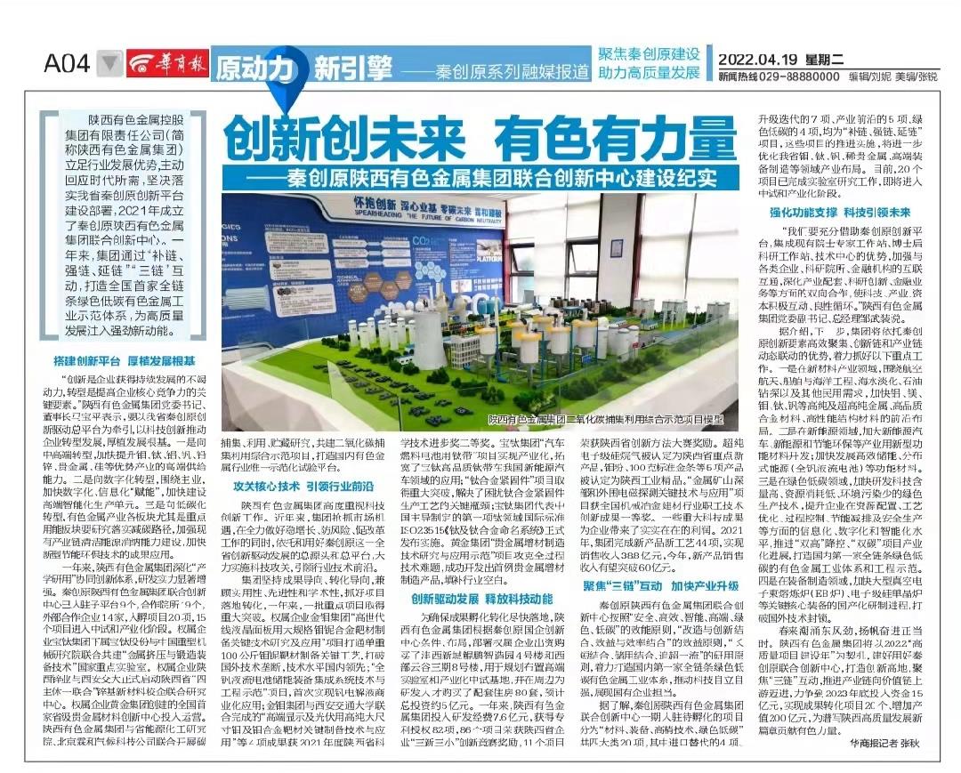 華商網(wǎng):創(chuàng)新創(chuàng)未來 有色有力量——秦創(chuàng)原陜西有色金屬集團聯(lián)合創(chuàng)新中心建設紀實