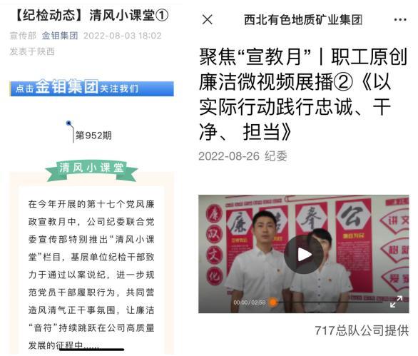 清風(fēng)課堂揚(yáng)清風(fēng)。金鉬集團(tuán)特別拍攝制作了十期“清風(fēng)小課堂”欄目在微信公眾號(hào)展播,通過(guò)以案說(shuō)紀(jì)的形式,將黨紀(jì)法規(guī)轉(zhuǎn)化為通俗易懂、深入淺出的學(xué)習(xí)內(nèi)容,進(jìn)一步延伸宣傳教育觸角,讓清廉文化深入基層、貼近廣大干部職工。地礦(黃金)集團(tuán)開(kāi)展“聚焦宣傳月”廉潔微視頻作品展播活動(dòng),以職工群眾“喜聞見(jiàn)樂(lè)”的方式開(kāi)展廉潔宣教,讓黨員干部職工在拍攝中受教育、在觀(guān)看中得體會(huì)。