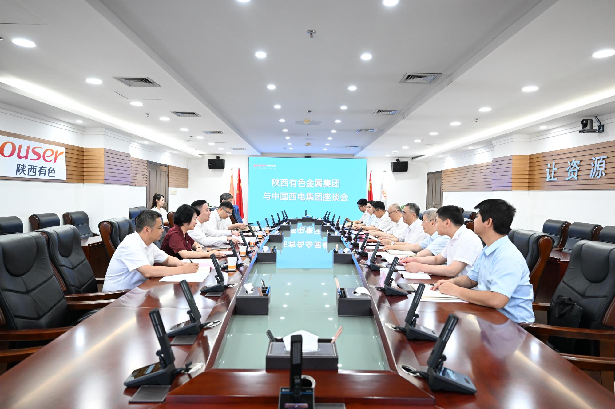 6月24日,陜西有色金屬集團(tuán)黨委副書(shū)記、董事、總經(jīng)理莫勇在集團(tuán)總部與來(lái)訪的中國(guó)西電集團(tuán)黨委副書(shū)記、董事、總經(jīng)理韓兵一行座談交流。