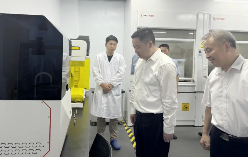 莫勇一行深入西安匯創(chuàng)公司產(chǎn)品展廳、掃描電鏡及3D打印表面處理室、貴金屬分析儀器室、貴金屬氫能催化研究室及金屬3D打印研究室現(xiàn)場(chǎng)了解企業(yè)發(fā)展和生產(chǎn)經(jīng)營(yíng)等情況,并同公司領(lǐng)導(dǎo)班子座談交流。