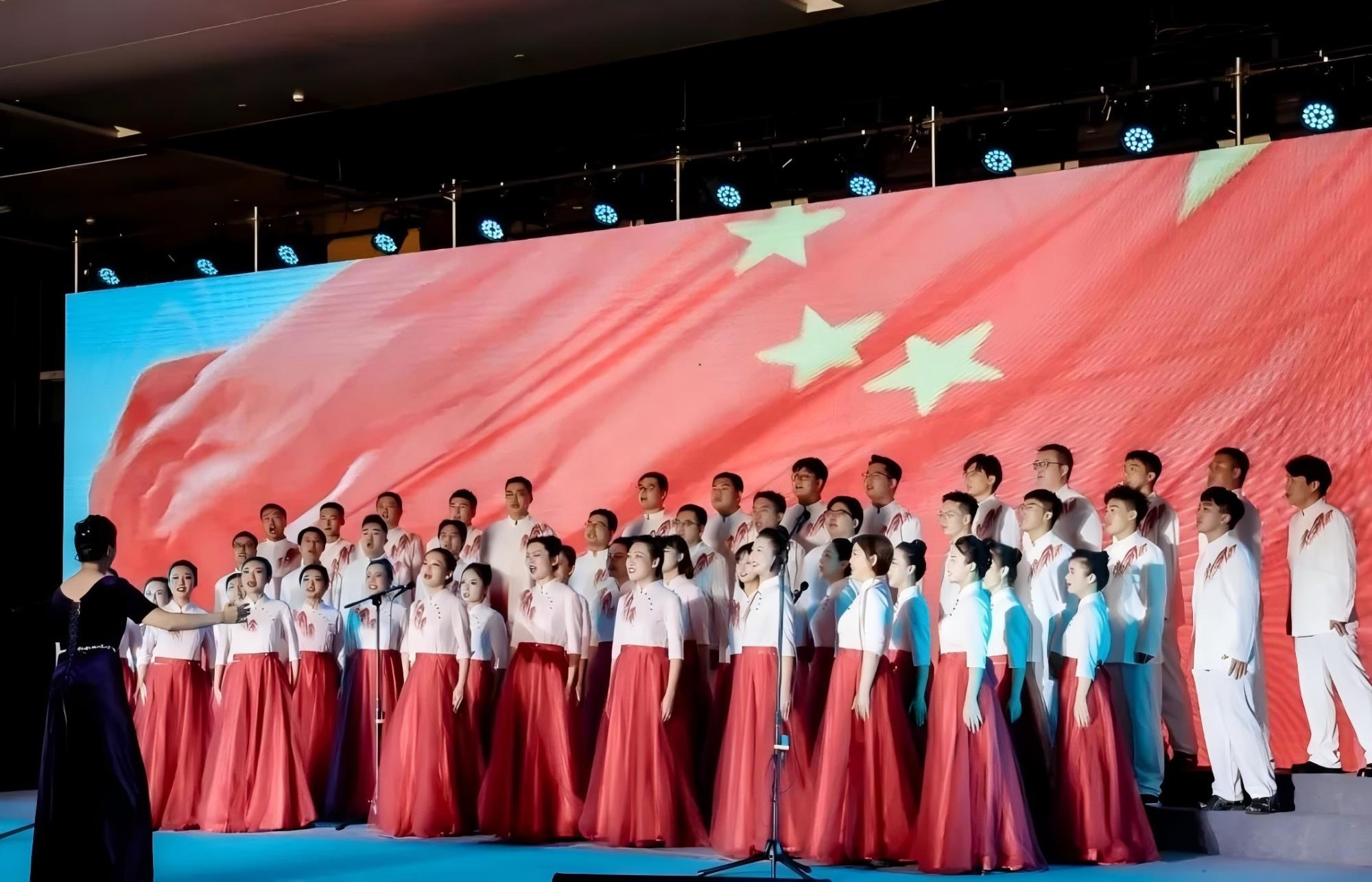 文藝演出在合唱《歌唱祖國(guó)》中圓滿(mǎn)落幕。