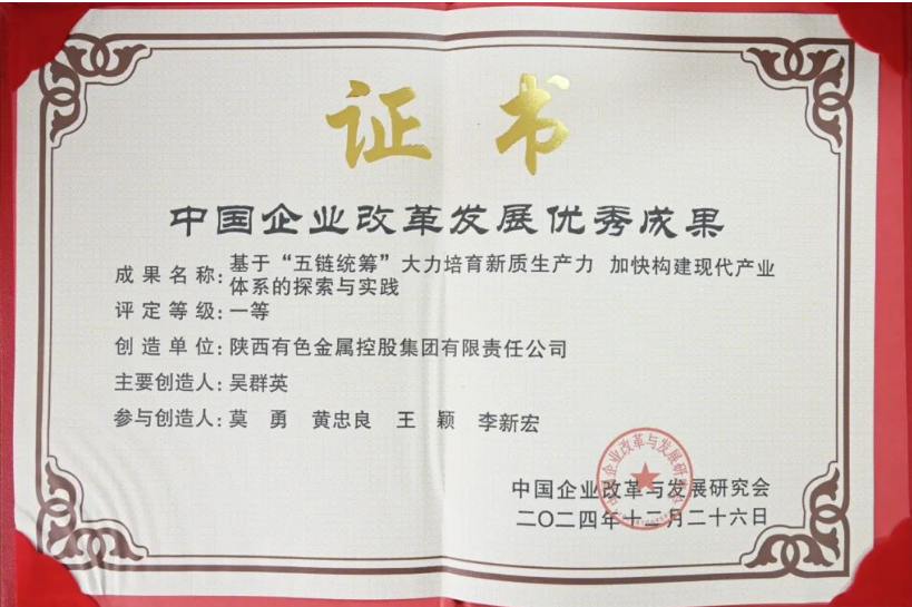2月22日,由中國(guó)企業(yè)改革與發(fā)展研究會(huì)(下稱(chēng)“中企研”)主辦的國(guó)有企業(yè)改革深化提升行動(dòng)研討會(huì)和第八屆中國(guó)企業(yè)改革發(fā)展峰會(huì)暨成果發(fā)布會(huì)在北京舉行。陜西有色金屬集團(tuán)應(yīng)邀參加并作為唯一一家地方國(guó)有企業(yè)代表在研討會(huì)上作交流發(fā)言。集團(tuán)公司黨委委員、副總經(jīng)理黃忠良出席會(huì)議、交流發(fā)言并領(lǐng)取“中國(guó)企業(yè)改革發(fā)展優(yōu)秀成果一等獎(jiǎng)”證書(shū)。