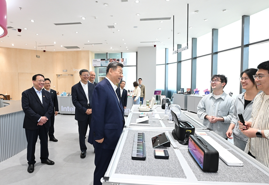 4月29日,中共中央總書記、國家主席、中央軍委主席習(xí)近平在上海考察。這是習(xí)近平在位于徐匯區(qū)的上海“模速空間”大模型創(chuàng)新生態(tài)社區(qū)人工智能產(chǎn)品體驗店考察。新華社記者 謝環(huán)馳 攝