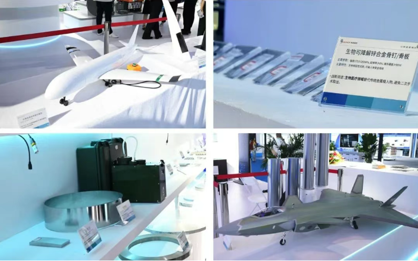來自權(quán)屬企業(yè)的170余種代表性展品按照產(chǎn)品應(yīng)用領(lǐng)域分類展陳,從實物、結(jié)構(gòu)件到模型、樣機、沙盤,展示了陜西有色金屬集團在服務(wù)國家航空航天、海洋工程裝備、生物醫(yī)療、新能源、半導體及光伏、3C電子等領(lǐng)域的創(chuàng)新創(chuàng)業(yè)成果,展現(xiàn)陜西有色金屬集團從金屬采選冶到挺進戰(zhàn)略新興產(chǎn)業(yè)的躍遷之路,展現(xiàn)服務(wù)國民經(jīng)濟以及關(guān)鍵材料國產(chǎn)替代、自主保供所做的努力和貢獻,闡釋國有企業(yè)科技創(chuàng)新?lián)敗?