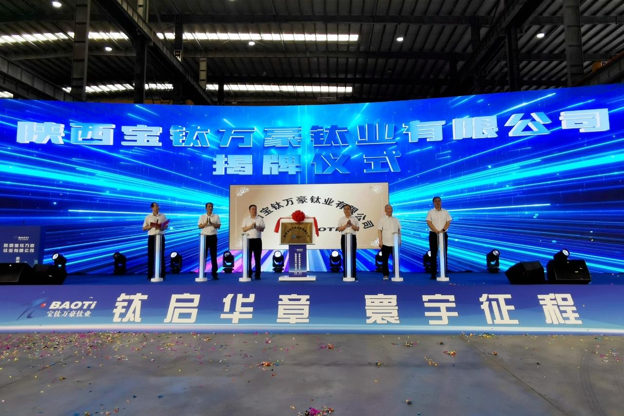8月26日,陜西寶鈦萬豪鈦業(yè)有限公司揭牌儀式在寶雞舉行。陜西有色金屬集團黨委副書記、董事、總經(jīng)理莫勇,寶雞市人民政府黨組成員、副市長張昭出席并揭牌。