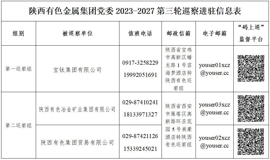 陜西有色金屬集團(tuán)黨委2023—2027第三輪巡察近日完成進(jìn)駐,根據(jù)集團(tuán)黨委統(tǒng)一部署,本輪巡察共派出2個巡察組,分別對寶鈦集團(tuán)黨委和冶礦集團(tuán)黨委、貿(mào)易公司黨委開展常規(guī)巡察。
