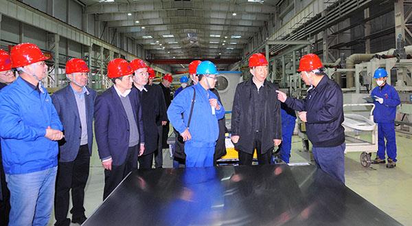 當天下午,趙剛一行來到位于西安高新區(qū)錦業(yè)一路的鉬金屬工業(yè)園,現(xiàn)場參觀考察鉬產(chǎn)業(yè)發(fā)展,與集團公司領導班子進行座談。在馬寶平、鄒武裝、程方方,金鉬股份總經(jīng)理楊國平等人陪同下,趙剛首先參觀了公司鉬產(chǎn)業(yè)布局示意沙盤,走進金鉬股份展廳,聽取了馬寶平對公司概況、主要產(chǎn)品、發(fā)展成就介紹。隨后,他深入鉬粉分廠和板材事業(yè)部,仔細參觀、詢問了氧化鉬、鉬爐料及鉬板坯等鉬制品生產(chǎn)線的工藝流程、產(chǎn)品應用等情況,對公司在我國鉬行業(yè)取得的領先地位和作出的突出貢獻表示贊賞。