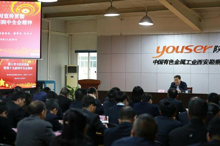 11月29日下午,陜西有色集團黨委書記、董事長馬寶平到權屬企業(yè)西安勘察院宣講黨的十九屆四中全會精神。