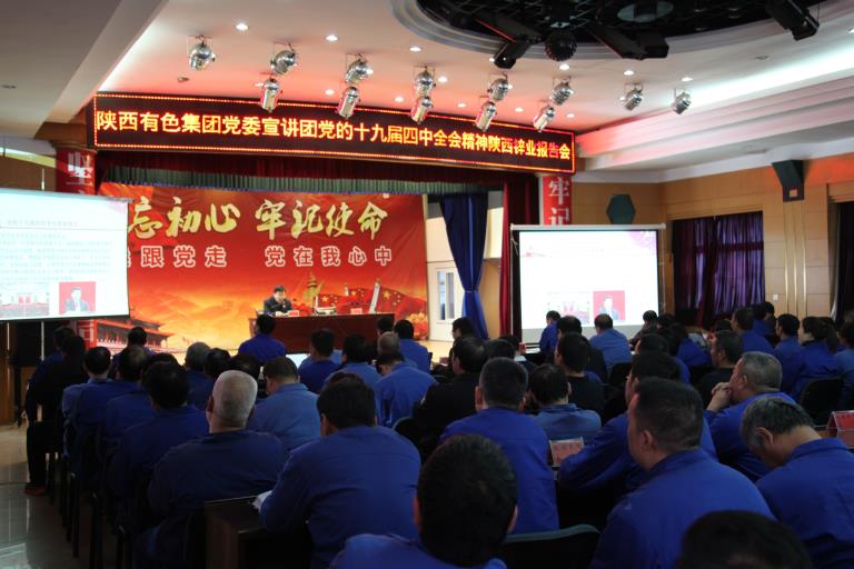 12月5日下午,集團公司黨委宣講團成員、黨委副書記郭仕龍赴陜西鋅業(yè)公司宣講黨的十九屆四中全會精神。報告會由陜西鋅業(yè)公司黨委書記、董事長何學斌主持,公司黨政班子全體成員、總經(jīng)理助理及各部室正副主任、各支部書記及全體黨員200多人參加。