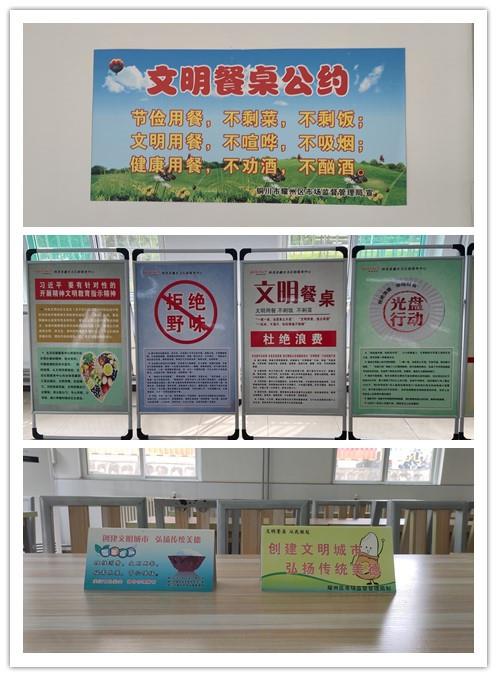 加大宣傳,營造氛圍。陜西美鑫公司始終秉承“一粥一飯當思來之不易,半縷半絲恒念物力維艱”的理念,通過QQ工作群、微信工作群、公司網站、公眾號等各類平臺,向廣大干部職工普及餐桌文明知識,推廣餐桌文明禮儀,倡導節(jié)約用餐行為。并在職工餐廳懸掛宣傳條幅,張貼“文明餐桌行動”宣傳畫及“文明餐桌行動”告示牌、循環(huán)滾動播放宣傳標語等多種方式大張旗鼓宣傳“文明餐桌”實踐活動的重要意義,為文明餐桌行動營造了良好的氛圍。