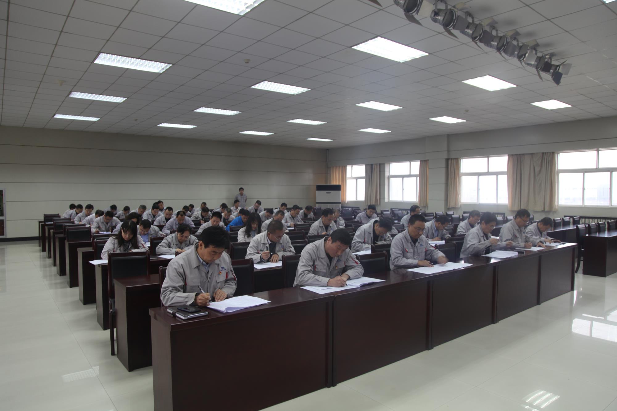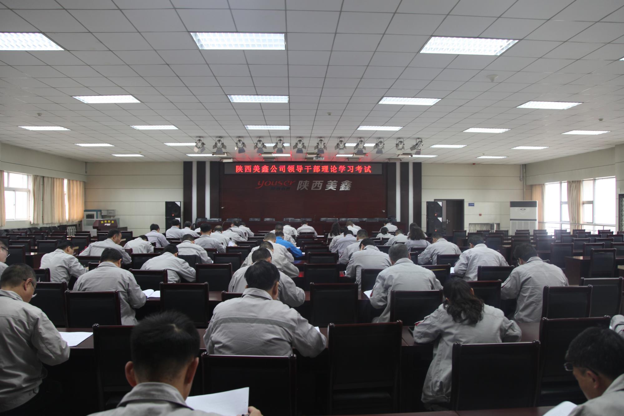 為全面檢驗公司中層以上領(lǐng)導(dǎo)干部理論學(xué)習(xí)情況,11月27日下午,陜西美鑫公司黨委組織開展下半年領(lǐng)導(dǎo)干部理論知識考試,公司全體班子成員、中層干部、機(jī)關(guān)直管干部共計57人參加了考試。