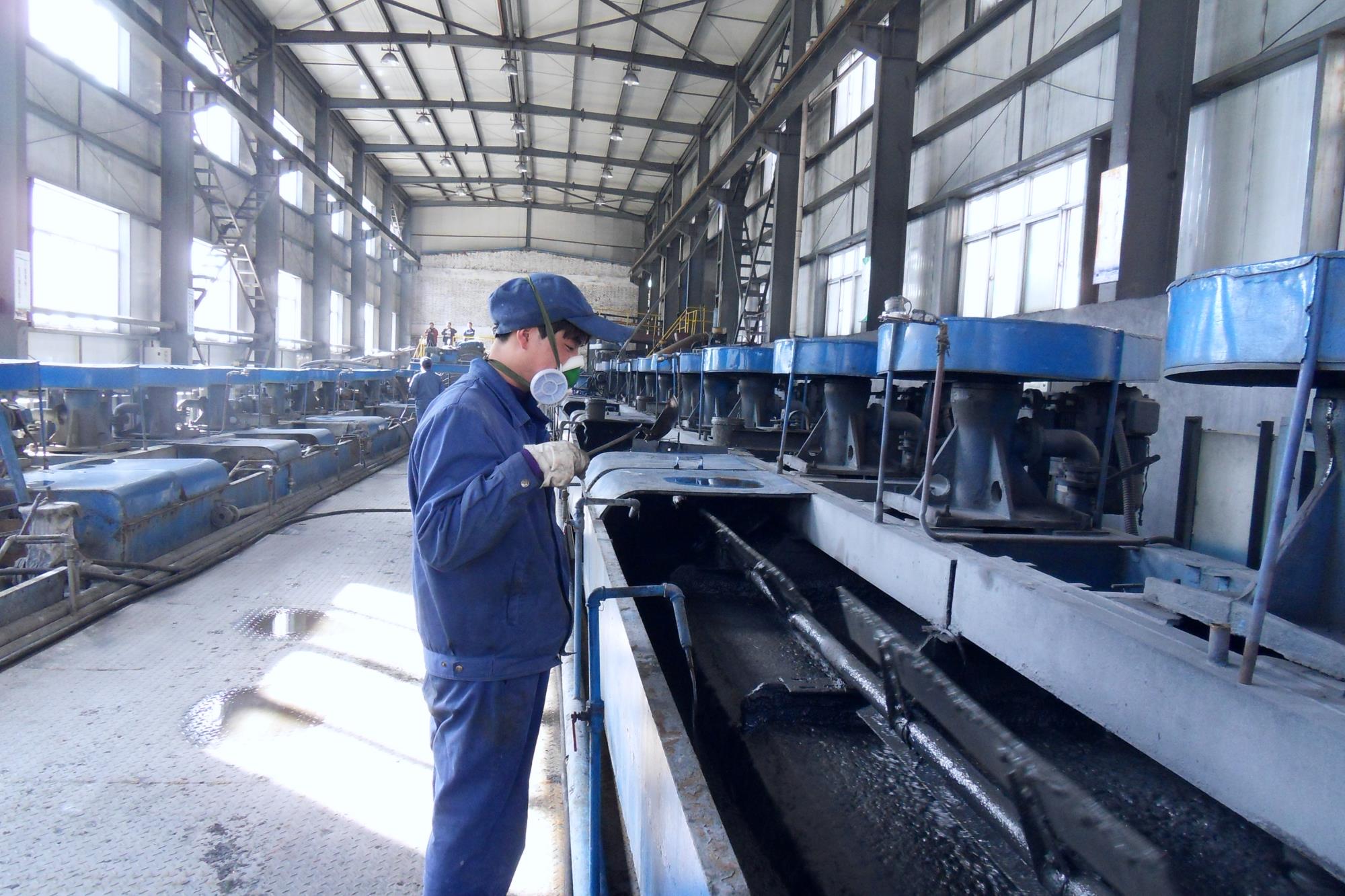 圖2:二里河礦業(yè)公司浮選車間操作工在觀察浮選泡沫變化情況