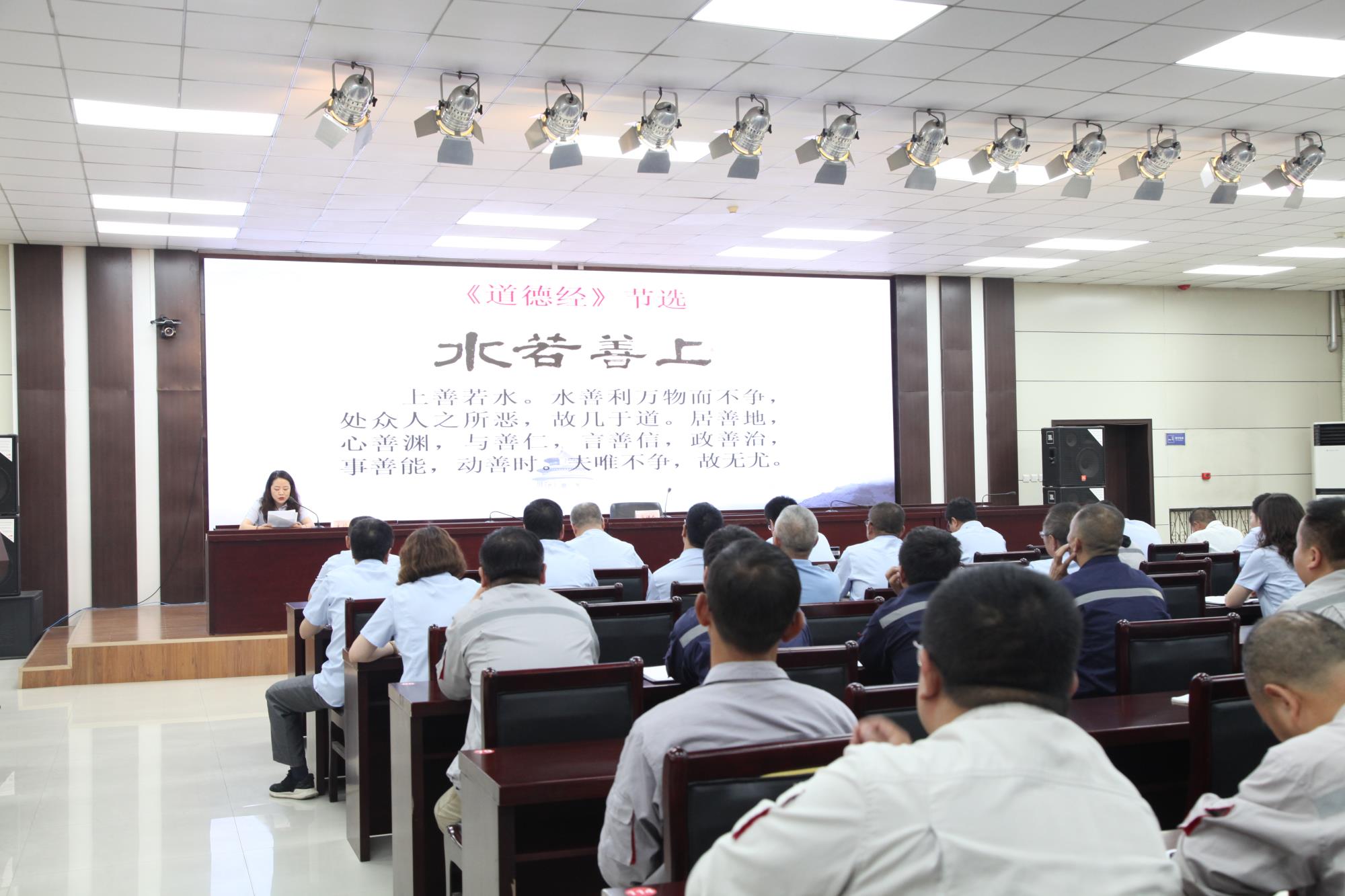 在現(xiàn)場誦讀環(huán)節(jié),大家大聲誦讀《道德經(jīng)》,體會(huì)著老子倡導(dǎo)的如水股人生哲學(xué)的行為準(zhǔn)則和品格,進(jìn)一步明確了尚德感恩、敬業(yè)奉獻(xiàn)的信心和決心。